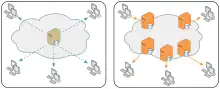 In peer-to-peer (P2P) content-delivery networks, clients provide resources as well as use them. This means that, unlike client–server systems, the content-centric networks can actually perform better as more users begin to access the content (especially with protocols such as Bittorrent that require users to share). This property is one of the major advantages of using P2P networks because it makes the setup and running costs very small for the original content distributor.[18][19]