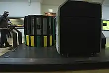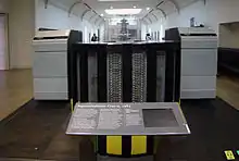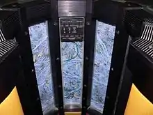![]() Cray-2 central unit (foreground) and Fluorinert-cooling "waterfall" (background), on display at the EPFL. | |
