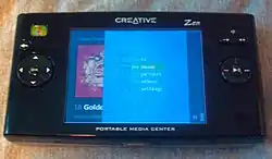 The Zen Portable Media Center, announced on January 8, 2004, and released eight months later,[7] is based on Microsoft's Portable Media Center interface, runs Windows Mobile and supports WMV, WMA, and MP3, and can display JPEG images; other video formats are supported through transcoding. This device was the first to exclusively support Microsoft's Media Transfer Protocol, and was presented at the Consumer Electronics Show in 2004, winning the TechTV Best of CES Award in the Portable Audio and Video category.[2] The player uses a 1.8-inch 20 or 40 GB hard drive from Hitachi. The Zen Portable Media Center was replaced by the ZEN Vision and the ZEN Vision W.