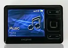 The replacement of the ZEN:VisionM, simply called "ZEN", offered many of the same features but in a small pocket-sized form factor.[33] This flash-based player was released on September 14, 2007,[34] in capacities of 2, 4, 8, and 16 GB. A 32 GB model was announced on December 4, 2007, setting a record for storage capacity among flash-based players. The player is 0.44-inch thick,[35] making it the slimmest ZEN player so far. It is the first ZEN to have an SD card slot, support for unprotected iTunes-encoded AAC, and a 24-bit color screen.