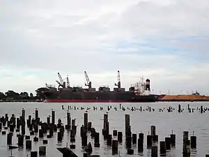 Crimson Polaris was a cargo ship that was completed in 2008. On 11 August 2021, it ran aground in Hachinohe, Japan nearing the end of a sailing from Thailand carrying 44,000 tonnes of wood chips. The following day it split in two between holds 5 and 6, spilling a trail of oil 24 kilometres (15 mi) long and 800 metres (0.50 mi) wide, with 1,600 tonnes of oil remaining in the ship.[1][2][3] The stern sank while the front section was towed to port for unloading.[4]