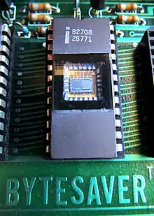 When the 2716 EPROM was introduced, with twice the storage capacity of the 2708, Cromemco designed the 32K Bytesaver to support that chip. Unlike earlier Bytesavers that had 8 EPROM sockets, the 32K Bytesaver had 16 sockets to provide up to 32K bytes of programmable memory.[9]