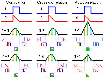 - The cross-correlation of functions and is equivalent to the convolution (denoted by ) of and . That is: