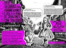 As a successor to the Cypherpunks of the 1990s,[4] CryptoParty was conceived in late August 2012 by the Australian journalist Asher Wolf in a Twitter post[5] following the passing of the Cybercrime Legislation Amendment Bill 2011 and the proposal of a two-year data retention law in that country,[6] the Cybercrime Legislation Amendment Bill 2011.[7] The DIY, self-organizing movement immediately went viral,[8] with a dozen autonomous CryptoParties being organized within hours in cities throughout Australia, the US, the UK, and Germany. [9] Many more parties were soon organized or held in Chile, The Netherlands, Hawaii, Asia, etc. Tor usage in Australia itself spiked,[10] and CryptoParty London with 130 attendees—some of whom were veterans of the Occupy London movement—had to be moved from London Hackspace to the Google campus in east London's Tech City.