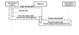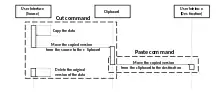 Cut, copy, and paste are essential commands of modern human–computer interaction and user interface design. They offer an interprocess communication technique for transferring data through a computer's user interface. The cut command removes the selected data from its original position, and the copy command creates a duplicate; in both cases the selected data is kept in temporary storage called the clipboard. Clipboard data is later inserted wherever a paste command is issued. The data remains available to any application supporting the feature, thus allowing easy data transfer between applications.