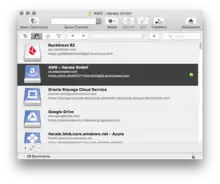 Cyberduck is an open-source client for FTP and SFTP, WebDAV, and cloud storage (OpenStack Swift, Amazon S3, Backblaze B2 and Microsoft Azure), available for macOS and Windows (as of version 4.0) licensed under the GPL. Cyberduck is written in Java and C# using the Cocoa user interface framework on macOS and Windows Forms on Windows. It supports FTP/TLS (FTP secured over SSL/TLS), using AUTH TLS as well as directory synchronization. The user interacts with the user interface (GUI), including file transfer by drag and drop and notifications via Growl. It is also able to open some files in external text editors.