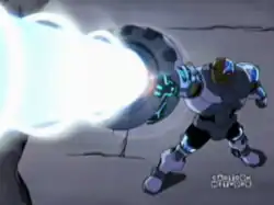 Large portions of Victor Stone's body have been replaced by advanced mechanical parts (hence the name Cyborg) granting him superhuman strength, speed, stamina, and flight. His mechanically-enhanced body, much of which is metallic (initially Promethium mainly "depleted" Promethium made of titanium and vanadium),[52] is far more durable than a normal human body. Cyborg's internal computer system can interface with external computers. Other features include an electronic "eye" which replicates vision but at a superhuman level. His mechanical parts contain a wide variety of tools and weapons, such as a grappling hook/line and a finger-mounted laser. Perhaps his most frequently-used weapon is his sound amplifier (often referred to as his "white sound blaster" in the comic books; the Teen Titans animated series calls it a "sonic cannon") which can be employed at various settings either to stun his foes or to deliver concentrated blasts of sound potent enough to shatter rock and deform steel.[53]