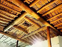 Darbazi (Georgian: დარბაზი; from Persian: darvāze, "gate") is a term used in Georgia to describe a chamber with a distinctive "swallow dome"-type roof structure found in the traditional domestic architecture of Asia Minor and the South Caucasus. The central feature is a pyramidal vault (gvirgvini), supported on pillars and constructed of a stepped series of hewn logs and beams, with a central opening at the top which serves as a window and smoke flue. The Roman authority Vitruvius (1st century BC) includes in his De architectura a description of a Colchian dwelling, the ancient prototype of a darbazi.[1] Such lantern roofs are called harazashen or glkhatun in Armenia, kirlangiç kubbe or kirlangiç ortu in Turkey, and karadam in Azerbaijan.[2][3]