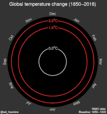 - Kahn, Brian (June 17, 2019). "This Striking Climate Change Visualization Is Now Customizable for Any Place on Earth". Gizmodo. Archived from the original on June 26, 2019. Developed in May 2018 by Ed Hawkins, University of Reading.