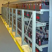 Backup power consists of one or more uninterruptible power supplies, battery banks, and/or diesel / gas turbine generators.[64]