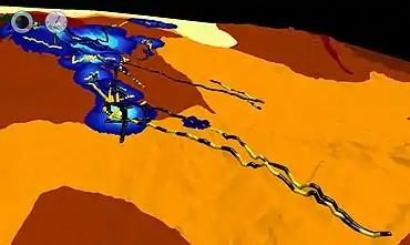 In the figure at right, rock lobsters are studied off the coast of Tasmania. Hugh Pederson of the University of Tasmania used data fusion software to fuse southern rock lobster tracking data (color-coded for in yellow and black for day and night, respectively) with bathymetry and habitat data to create a unique 4D picture of rock lobster behavior.