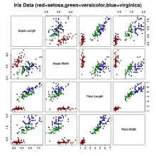 Various plots of the multivariate data set Iris flower data set introduced by Ronald Fisher (1936).[1]