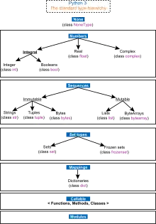 In computer science and computer programming, a data type (or simply type) is a collection or grouping of data values, usually specified by a set of possible values, a set of allowed operations on these values, and/or a representation of these values as machine types.[1] A data type specification in a program constrains the possible values that an expression, such as a variable or a function call, might take. On literal data, it tells the compiler or interpreter how the programmer intends to use the data. Most programming languages support basic data types of integer numbers (of varying sizes), floating-point numbers (which approximate real numbers), characters and Booleans.[2][3]