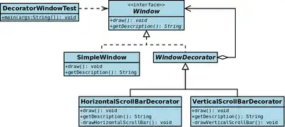 - ↑ "The Decorator design pattern - Structure and Collaboration". w3sDesign.com. Retrieved 2017-08-12.
