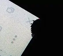 A partial sub-pixel defect is a manufacturing defect in which the RGB film layer was not cut properly.[2]