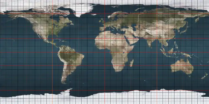 - ↑ Latitude lines 89°N to 89°S (179), multiplied by 360° of longitude (360), plus the two poles (2) = 179 × 360 + 2 = 64,442.