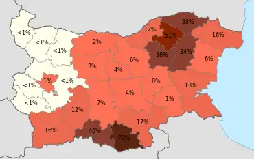- ↑ "НАСЕЛЕНИЕ КЪМ 01.03.2001 Г. ПО ОБЛАСТИ И ВЕРОИЗПОВЕДАНИЕ" [POPULATION AS OF 01.03.2001 BY DISTRICT AND RELIGION]. Archived from the original on 7 September 2010. Retrieved 6 October 2010.