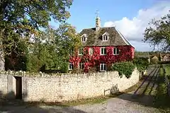 Denton Manor ( 52°52'58.17"N 0°43'15.72"W ) house is a Grade II listed 17th-century house standing in Denton Park. It is constructed of coursed ironstone rubble with ashlar quoins and Collyweston diminishing coursed slate roof in two storeys to an L-shaped plan with a 5 bay frontage.[19] It was built for Sir Bruno Welby, with extensive alterations and additions in 1953 and 1965 by Marshall Sisson.