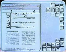 The desktop metaphor was first introduced by Alan Kay, David C. Smith, and others at Xerox PARC in 1970 and elaborated in a series of innovative software applications developed by PARC scientists throughout the ensuing decade. The first computer to use an early version of the desktop metaphor was the experimental Xerox Alto,[2][3] and the first commercial computer that adopted this kind of interface was the Xerox Star. The use of window controls to contain related information predates the desktop metaphor, with a primitive version appearing in Douglas Engelbart's "Mother of All Demos",[4] though it was incorporated by PARC in the environment of the Smalltalk language.[5]