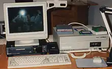 Desktop video refers to a phenomenon lasting from the mid-1980s to the early 1990s when the graphics capabilities of personal computers such as the Commodore Amiga, the Apple Macintosh II and specially-upgraded IBM PC compatibles had advanced to the point where individuals and local broadcasters could use them for analog non-linear editing and vision mixing in video production.[1] Despite the use of computers, desktop video should not be confused with digital video since the video data remained analog and it uses items like a VCR and a camcorder to record the video.[2] Full-screen, full-motion video's vast storage requirements meant that the promise of digital encoding would not be realized on desktop computers for at least another decade.