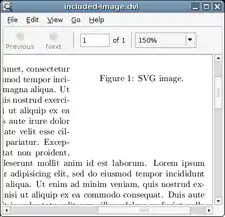 ![]() Evince previewing a DVI file. Note that referenced images are not displayed, because they are not part of the DVI file. Images will be added in by a print driver, such as dvips. | |
