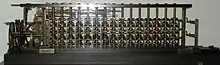 During the 1980s, Allan G. Bromley, an associate professor at the University of Sydney, Australia, studied Babbage's original drawings for the Difference and Analytical Engines at the Science Museum library in London.[35] This work led the Science Museum to construct a working calculating section of difference engine No. 2 from 1985 to 1991, under Doron Swade, the then Curator of Computing. This was to celebrate the 200th anniversary of Babbage's birth in 1991. In 2002, the printer which Babbage originally designed for the difference engine was also completed.[36] The conversion of the original design drawings into drawings suitable for engineering manufacturers' use revealed some minor errors in Babbage's design (possibly introduced as a protection in case the plans were stolen),[37] which had to be corrected. The difference engine and printer were constructed to tolerances achievable with 19th-century technology, resolving a long-standing debate as to whether Babbage's design could have worked using Georgian-era engineering methods. The machine contains 8,000 parts and weighs about 5 tons.[38]