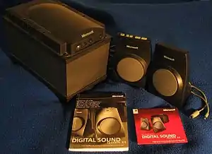 The Digital Sound System 80, short DSS80, was a three-piece PC audio system co-developed by Microsoft and Philips. It debuted on the 1998 Electronic Entertainment Expo (E³) and is most likely the only speaker system ever released by the Microsoft Corporation. It also remains one of the very few featuring Philips' wOOx subwoofer technology.