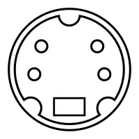 The plug on the Microsoft DSS80 control satellite speaker ( right speaker ) is a Mini-DIN 4[1] [2] plug. It is a proprietary connector.