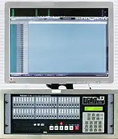 In 1978, Soundstream, who had made one of the first commercially available digital audio tape recorders in 1977, built what could be considered the first digital audio workstation using some of the most current computer hardware of the time.[1] The Digital Editing System, as Soundstream called it, consisted of a DEC PDP-11/60 minicomputer running a custom software package called DAP (Digital Audio Processor), a Braegen 14"-platter hard disk drive, a storage oscilloscope to display audio waveforms for editing, and a video display terminal for controlling the system. Interface cards that plugged into the PDP-11's Unibus slots (the Digital Audio Interface, or DAI) provided analog and digital audio input and output for interfacing to Soundstream's digital recorders and conventional analog tape recorders. The DAP software could perform edits to the audio recorded on the system's hard disks and produce simple effects such as crossfades.