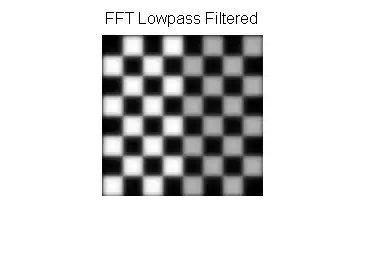 image = checkerboard F = Fourier Transform of image Show Image: log(1+Absolute Value(F)) |