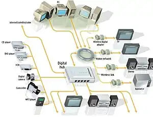 Digital media players are also commonly referred to as a digital media extender, digital media streamer, digital media hub, digital media adapter, or digital media receiver (which should not be confused with AV receiver).[4][5]