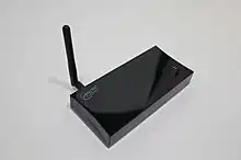 By November 2000, an audio-only digital media player was demonstrated by a company called SimpleDevices, which was awarded two patents covering this invention in 2006.[6][7] Developed under the SimpleFi name by Motorola in late 2001, the design was based on a Cirrus Arm-7 processor and the wireless HomeRF networking standard which pre-dated 802.11b in the residential markets.[8] Other early market entrants in 2001 included the Turtle Beach AudioTron, Rio Receiver and SliMP3 digital media players. An early version of a video-capable digital media player was presented by F.C. Jeng et al. in the International Conf. on Consumer Electronics in 2002.[9] It included a network interface card, a media processor for audio and video decoding, an analog video encoder (for video playback to a TV), an audio digital to analog converter for audio playback, and an IR (infrared receiver) for remote-control-interface.