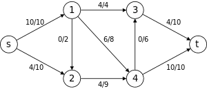 - ↑ This means that the subgraph resulting from removing all saturated edges (edges with ) does not contain any path from to . In other terms, the blocking flow is such that every possible path from to contains a saturated edge.