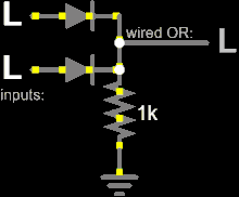 - ↑ Integrated Circuits §Using diodes to combine outputs, Electronics Club, retrieved 27 November 2022.