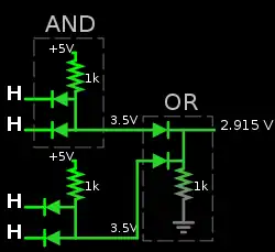 However, passive diode logic gates accumulate the following voltage losses when gates are cascaded: