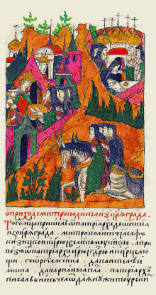 ![]() Dionysius II sending Joasaphus, metropolitan of Cyzicus, as ambassador to Ivan IV of Russia | |