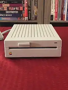 The Disk IIc (A2M4050) was a half-height 5+1⁄4-inch floppy disk drive introduced by Apple Computer in 1984 styled for use alongside the Apple IIc personal computer, the only Apple II to contain a 5+1⁄4-inch built-in disk drive mechanism. The disk port on the original IIc was only designed to control one additional, external 5+1⁄4-inch disk drive, and as such, this particular drive omitted a daisy-chain port in back. It was possible to use it on other Apple II models, so long as it came last in the chain of drive devices (due to lacking a daisy-chain port); but since the Disk IIc was sold without a controller card, the Apple IIc computer needing none, it had to be adapted to an existing Disk II controller card in this case. Essentially the same as the full-height Disk II, Apple sold the Disk IIc for US$329, and other companies later sold similar drives for less.[10]