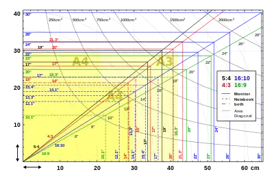 | Diagonal | 5:4 | Diagonal | 4:3 | Diagonal | 3:2 (15:10) | Diagonal | 8:5 (16:10) | Diagonal | 5:3 (15:9) | Diagonal | 16:9 (4²:3²) | Diagonal | 64:27 (4³:3³ ≈ 21:9) | ||||||||||||||||||||||||||||||||||||||||||||||||