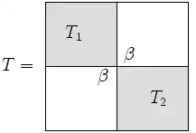 We write as a block diagonal matrix, plus a rank-1 correction:
