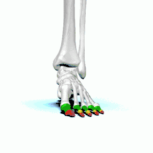 Toe bones or phalanges of the foot.