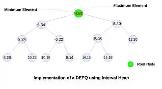 Apart from the above-mentioned correspondence methods, DEPQ's can be obtained efficiently using interval heaps.[6] An interval heap is like an embedded min-max heap in which each node contains two elements. It is a complete binary tree in which:[6]