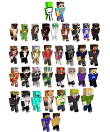 ![]() Dream SMP characters; each skin is used by a different Minecraft personality. | |