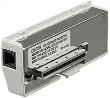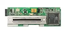 The Broadband Adapter is a network adapter that was released as a separate accessory for the Dreamcast in Japan on July 15, 2000, retailing at ¥8,800;[20] the United States followed suit on January 9, 2001, with a retail price of $59.95.[21][22][23] CSI Co., Ltd. manufactured the adapter in Japan.[24] The adapter was never bundled with any console; it was sold in Japan through CSI's website and cable Internet access providers, while the adapter was sold in the United States exclusively through Sega's online store from launch until March 2001, when it started appearing in retail stores.[21][25] A European release for the adapter was planned for early 2001, but it ultimately did not materialize with the Dreamcast's discontinuation;[26][27] despite that, use of an American (or Japanese) adapter on a PAL system is possible since the adapter is not region locked.[28]