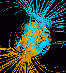 - ↑ Glatzmaier, G; Roberts, Paul H. (1995). "A three-dimensional convective dynamo solution with rotating and finitely conducting inner core and mantle". Physics of the Earth and Planetary Interiors. 91 (1–3): 63–75. Bibcode:1995PEPI...91...63G. doi:10.1016/0031-9201(95)03049-3.