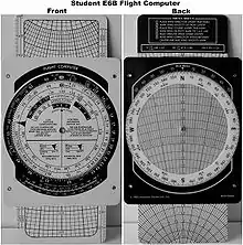 Flight computers are usually made out of aluminum, plastic or cardboard, or combinations of these materials. One side is used for wind triangle calculations using a rotating scale and a sliding panel. The other side is a circular slide rule. Extra marks and windows facilitate calculations specifically needed in aviation.