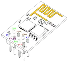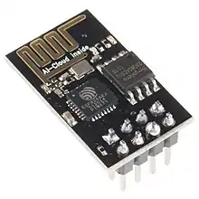 The chip was popularized in the English-speaking maker community in August 2014 via the ESP-01 module, made by a third-party manufacturer Ai-Thinker. This small module allows microcontrollers to connect to a Wi-Fi network and make simple TCP/IP connections using Hayes-style commands. However, at first, there was almost no English-language documentation on the chip and the commands it accepted.[2] The very low price and the fact that there were very few external components on the module, which suggested that it could eventually be very inexpensive in volume, attracted many hackers to explore the module, the chip, and the software on it, as well as to translate the Chinese documentation.[3]