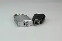 Radio-frequency identification (RFID) is the use of an object (typically referred to as an "RFID tag") applied to or incorporated into a product, animal, or person for the purpose of identification and tracking using radio waves. Some tags can be read from several meters away and beyond the line of sight of the reader. This technology is also used in some modern electronic locks. The technology has been approved since before the 1970s but has become much more prevalent in recent years due to its usages in things like global supply chain management and pet microchipping.[3]