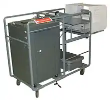 A direct-recording electronic (DRE) voting machine records votes by means of a ballot display provided with mechanical or electro-optical components that can be activated by the voter (typically buttons or a touchscreen); that processes data with computer software; and that records voting data and ballot images in memory components. After the election it produces a tabulation of the voting data stored in a removable memory component and as a printed copy. The system may also provide a means for transmitting individual ballots or vote totals to a central location for consolidating and reporting results from precincts at the central location. These systems use a precinct count method that tabulates ballots at the polling place. They typically tabulate ballots as they are cast and print the results after the close of polling.[27]