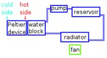 Multiple Peltier junctions, taking care of each specific temperature window, can usually be stacked to further enhance the overall performance on electronics cooling. As active heat pumps which consume power, thermoelectric coolers can produce temperatures below ambient, which is impossible with passive heatsinks, radiator-cooled liquid cooling, or heatpipe HSFs. However, while pumping heat, a Peltier module will typically consume more electric power than the heat amount being pumped.[8]
