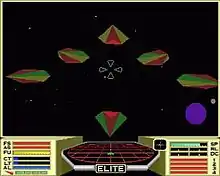 Elite is a space trading video game. It was written and developed by David Braben and Ian Bell and originally published by Acornsoft for the BBC Micro and Acorn Electron computers in September 1984.[1] Elite's open-ended game model, and revolutionary 3D graphics led to it being ported to virtually every contemporary home computer system and earned it a place as a classic and a genre maker in gaming history.[2] The game's title derives from one of the player's goals of raising their combat rating to the exalted heights of "Elite".